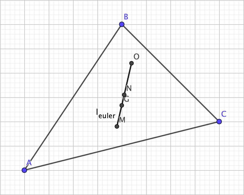 This line segment is referred to as the Euler line, as the eponymous mathematician Leonhard Euler discovered it himself in 1765. So, with this in mind, here’s another earth-shattering property: OG = 2 x GM. I’ll leave you to figure out how to prove this.
